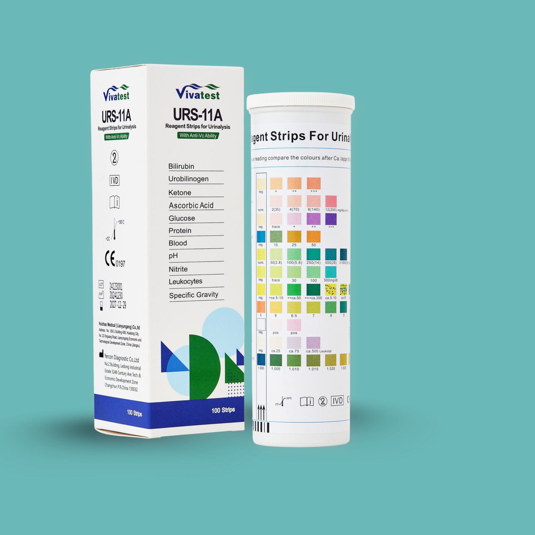 The Vivatest URS-11A Reagent Strips are designed for precise and efficient urine analysis, offering a comprehensive solution for clinical and home healthcare. With 100 strips per container, these test strips measure key parameters such as Bilirubin, Ketone, Glucose, Protein, pH, and more. The easy-to-read color chart provides accurate results for multiple urinary health markers, ensuring reliable diagnostics. Ideal for monitoring various health conditions, these strips maintain high performance when stored under optimal conditions, making them an essential tool for healthcare professionals and individuals alike.