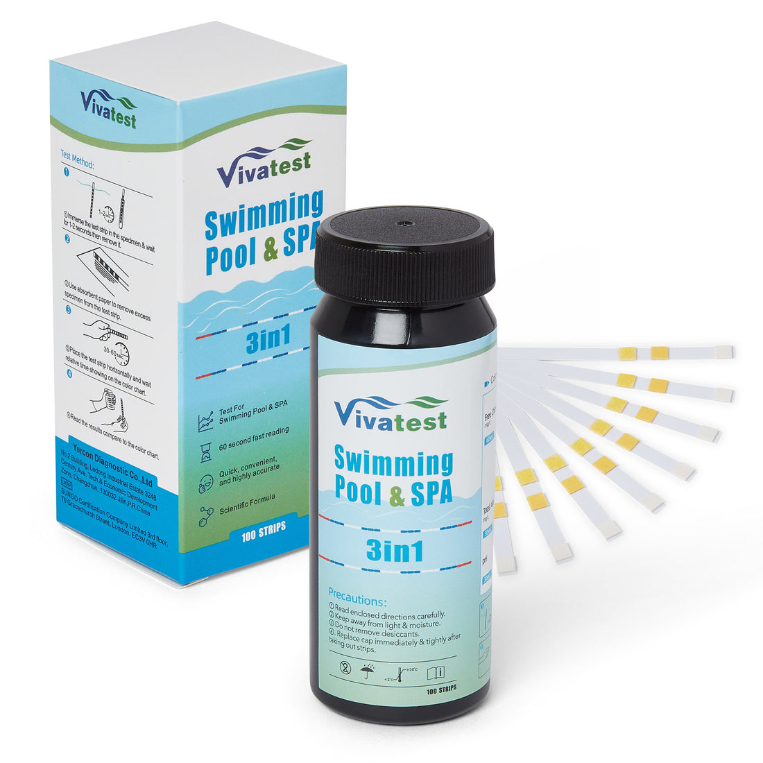 VivaTest Swimming Pool & Spa Test Strips 3-in-1 – Fast & Accurate Water Testing (100 Strips)