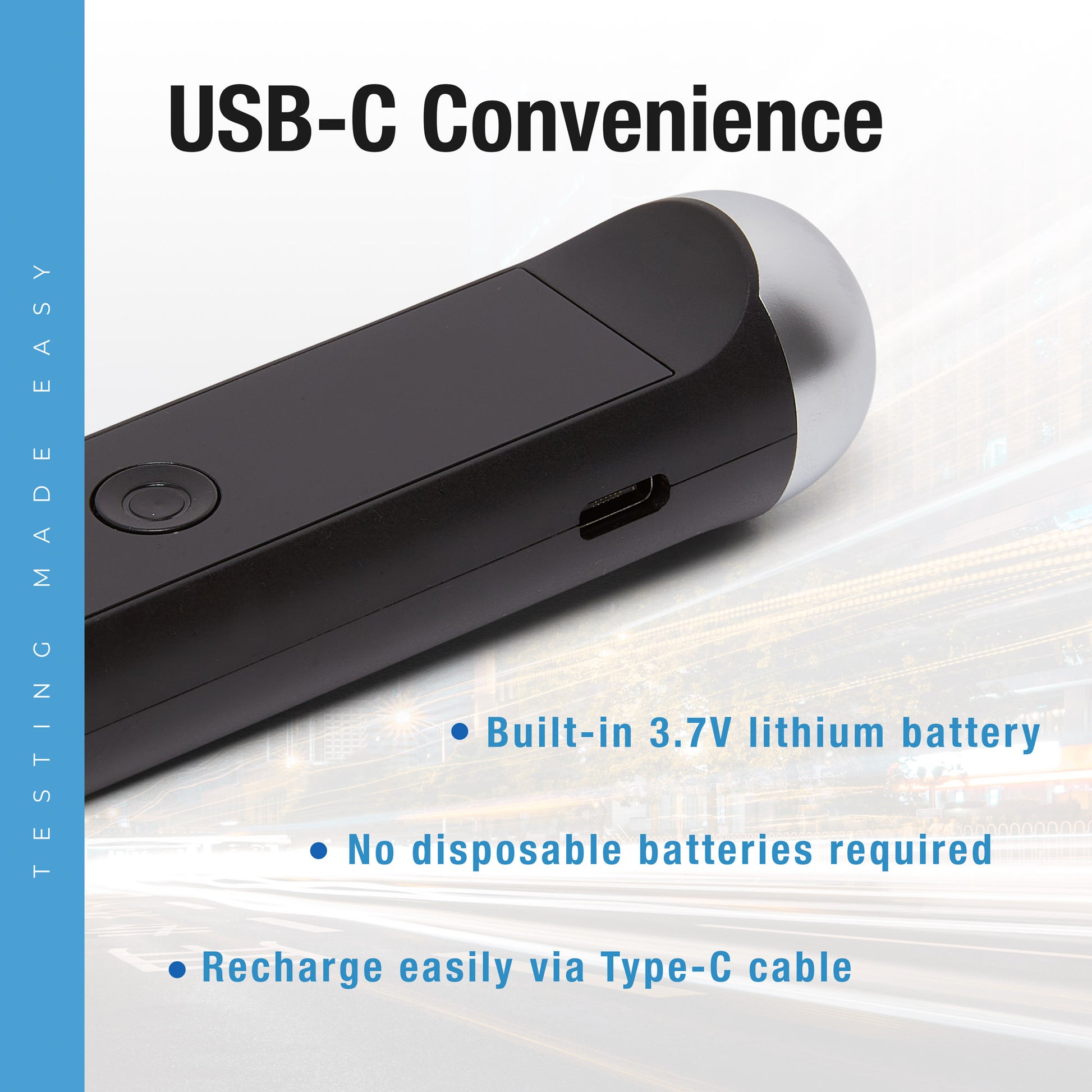This device is rechargeable via USB-C and does not require disposable batteries or mouthpieces.