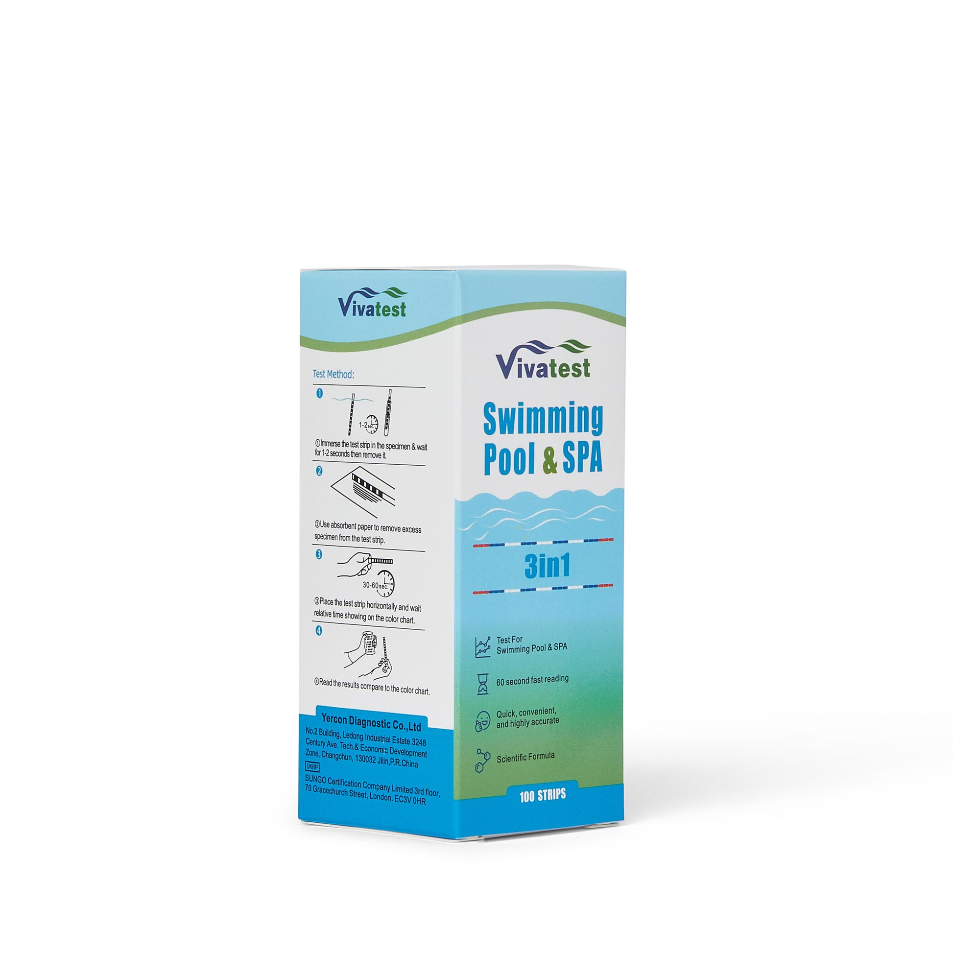 VivaTest Swimming Pool & Spa 3-in-1 Test Strips provide quick and reliable water quality readings for swimming pools, hot tubs, and spas. Calibrated for accurate results, these strips allow you to monitor water chemistry at home without the need for expensive testing equipment.